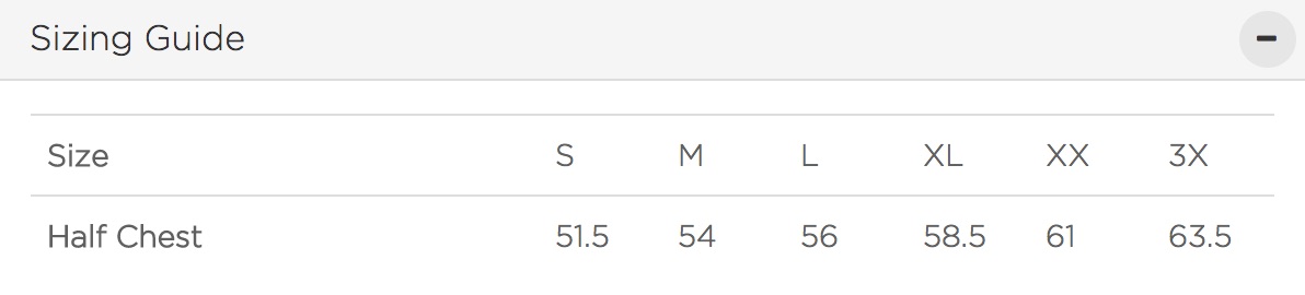 Half Chest (cm) 51.5 54 56 58.5 61 63.5